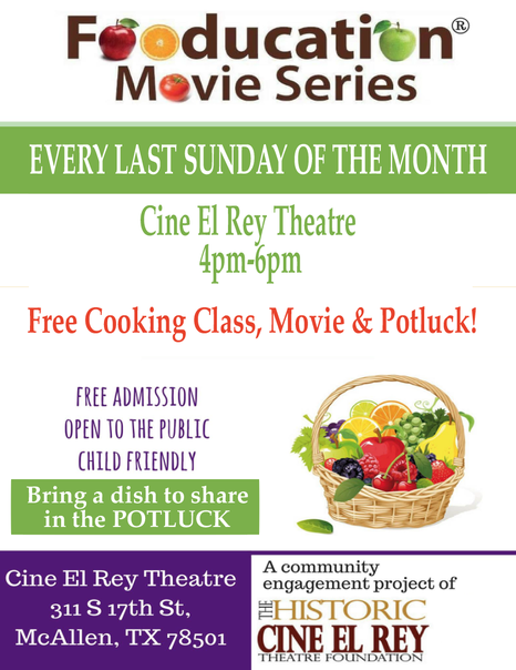 Every LAST Sunday of the month, Fooducation® Movie Series host FREE community films and a potluck meal to help educate how food affects our health and our world. The Fooducation® Movie Series is a project under The Historic Cine El Rey Theatre Foundation, a non profit 501 (c) 3 organization and serves as a community outreach to help improve the health & wellness of our community through the art of educational films.